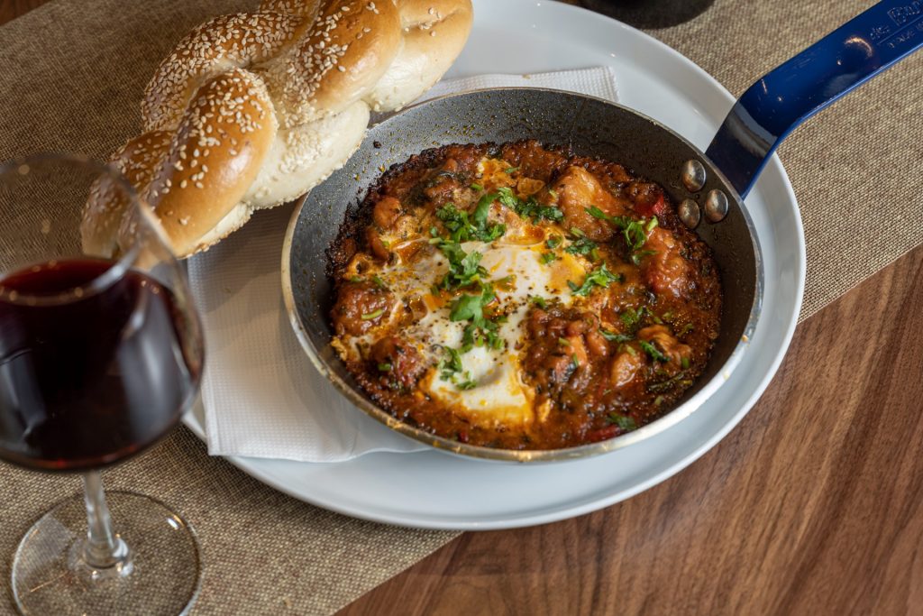 שקשוקה עשירה בטעמים נפלאים שילוב של ביצים תבלינים ועגבניות מוגש